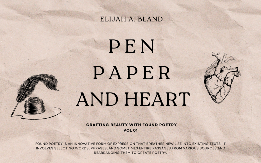 "Pen, Paper, and Heart: Crafting Beauty with Found Poetry" is a tribute to the muse that resides in the everyday, awaiting the touch of pen, paper, and heart to bring it to life.